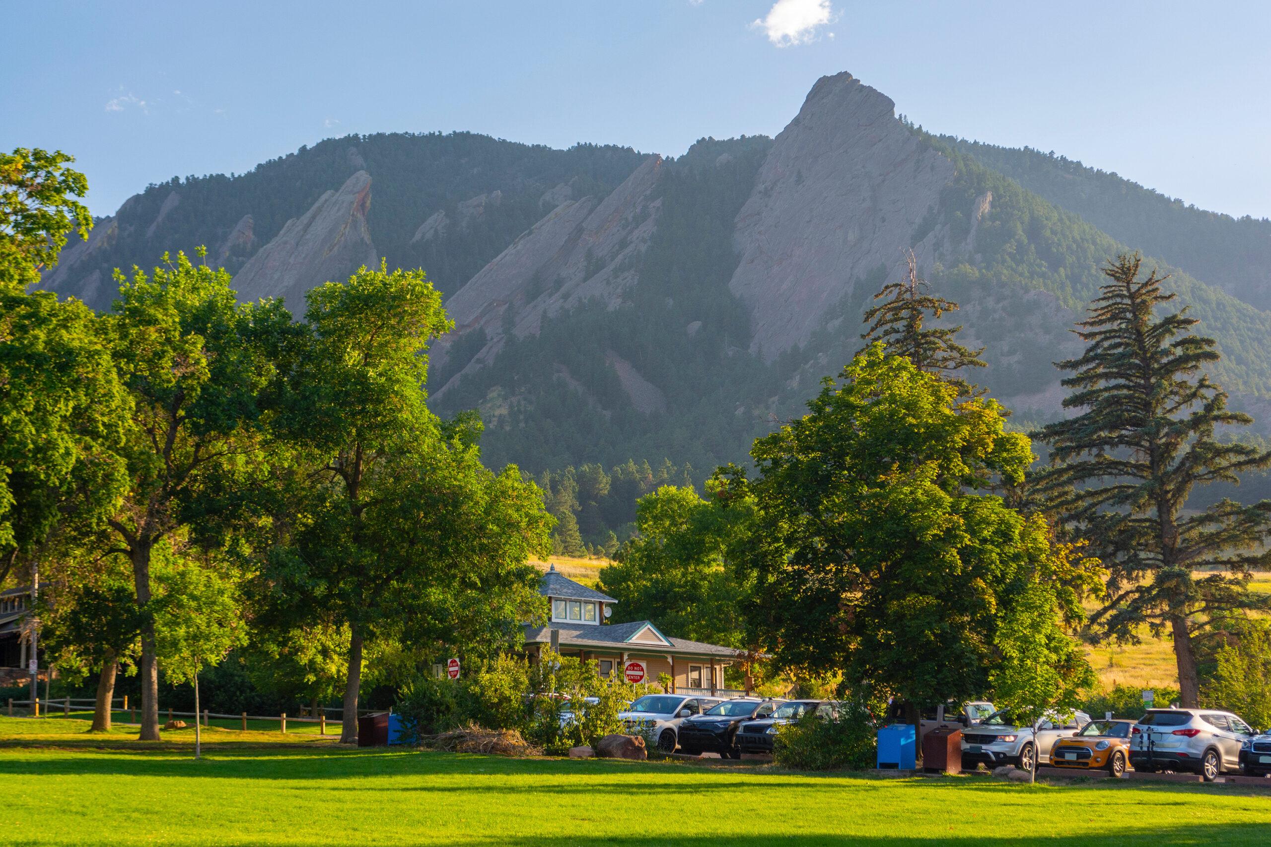 For a classic Boulder outing, head to Chautauqua for iconic Flatirons views and a wide network of foothill trails. Dogs are allowed here on a hand-held leash unless they meet the city’s Voice and Sight requirements, making it one of Boulder’s signature spots for a scenic hike with your pup.